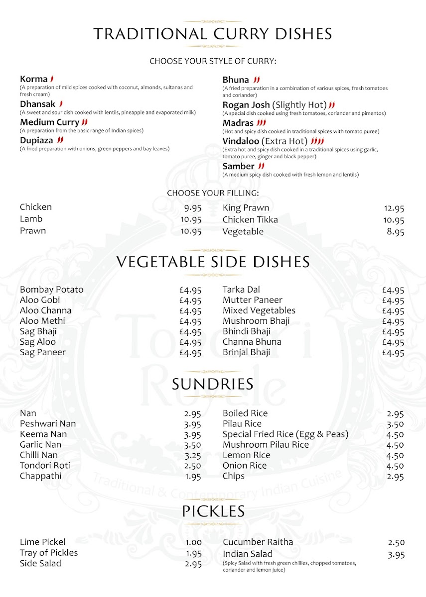 The menu at Tondori Royale offers a comforting and approachable selection of Indian dishes that suit a range of occasions—from relaxed family dinners to casual takeaways. Its offerings focus on familiar favourites and thoughtfully crafted meals that invite sharing and lingering around the table.